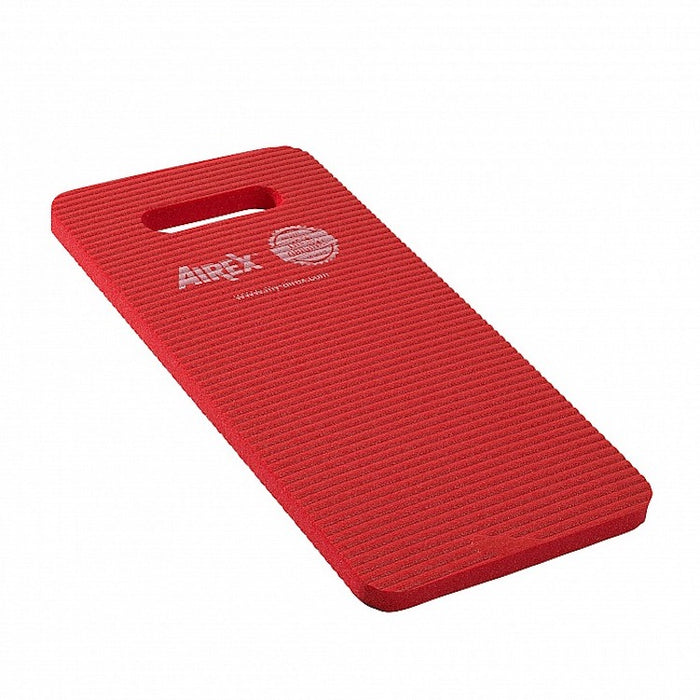 The Airex Knee Cushion is the pad you want when looking for versatility and comfort. This knee cushion will find use in the garden, during sports, working on the car, cleaning, chores around the house and anything else where a little bit of cushioning would be welcomed. You can even sit on it. The options are near-limitless. Lightweight, comfortable and non-slip thanks to the waffle texture on top and bottom, these cushions are a must have. Made from easy-to-clean, closed-cell foam with an "integrally molded skin" for extra toughness. These cushions are soft and supple. They gently absorb shock to prevent injuries and the textured surface areas prevent slipping and sliding. Rinsing after use with fresh water is all that's needed. Users then just shake off the excess water and allow to air dry. The cushions are Red, Latex-free and are sized at 16" x 7.5" x .6". The cushions float, making them ideal for water play and other water-based activities. The transverse ribbing pattern that is molded into the mat resists tearing. Safe in unexpected ways, as the ends will remain flat and not curl over time, preventing tripping. Thanks to the handle, you can transport the helper easily and hang it up for space-saving storage. Once cleaned, please note, damp products should never be stored in lockers or stacked in confined spaces
