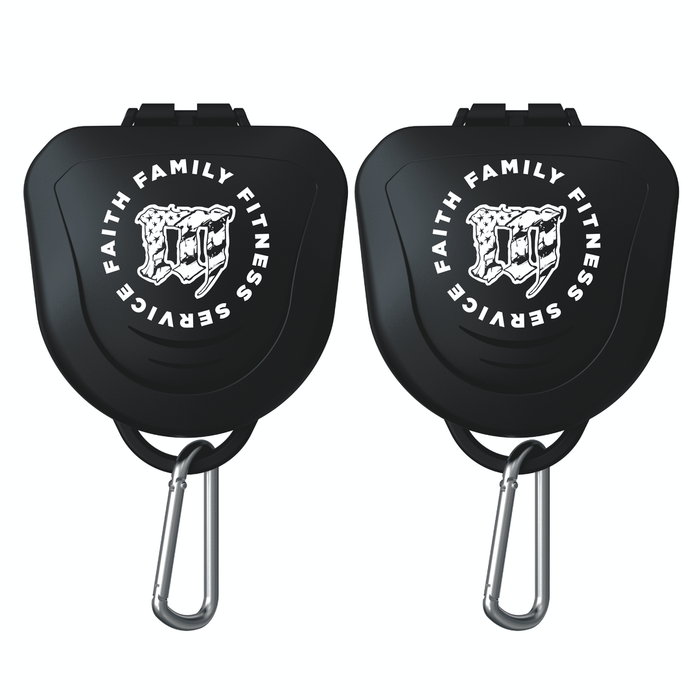 1 Performance PX1 Mouthpiece, 1 Performance PX2 Mouthpiece, 2 Ventilated Cases w/ Carabiner Attachments, and Fitting Instructions.