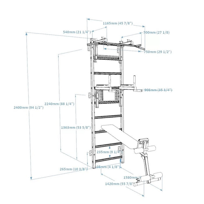 BenchK Series 7 733 Luxury Wall Bars for Home Gym and Personal Studio
