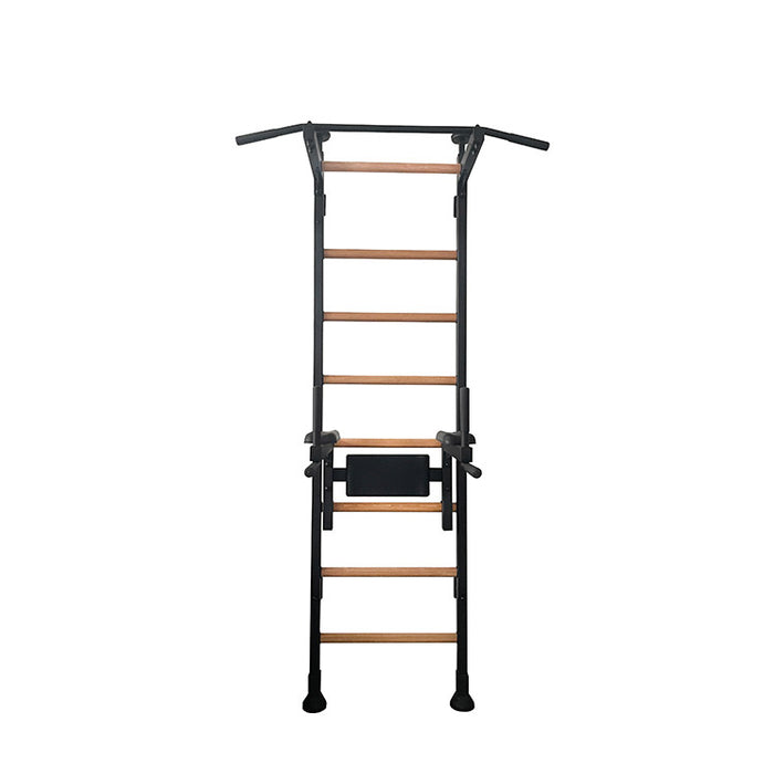 The BenchK 522B is a versatile wall bars unit equipped with a fixed pull-up bar, a supportive dip bar, and a high-performance workout bench.