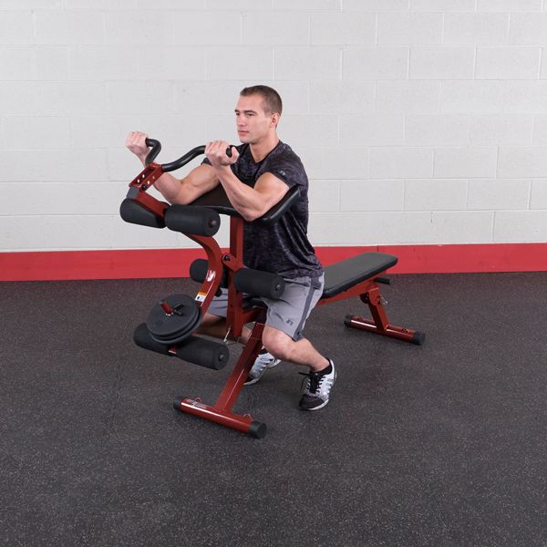 The BFPL10 Preacher Curl/Leg Curl accessory eliminates stress on the elbows while allowing full range-of-motion. Its unique design, angular construction and low center of gravity assure an extremely safe and stable attachment for the Best Fitness flat/incline/decline bench. Its design ensures stability and comfort while reducing cheating and lower back stress.