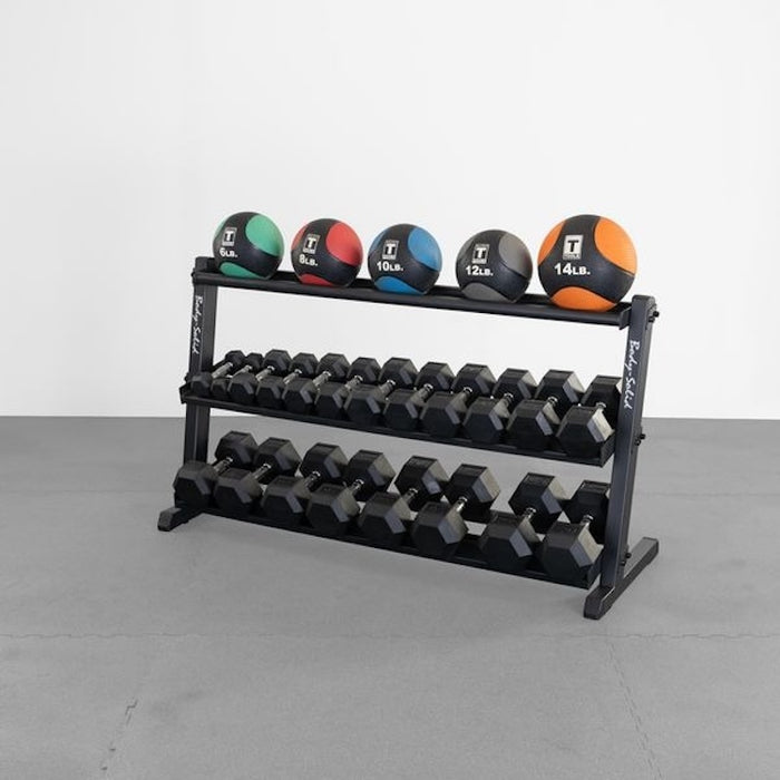 Shown with optional third tier #GDRT6: allows storage of up to 70 lb. dumbbell pairs.