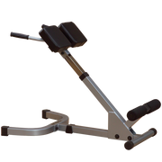 It's a combination inverted back extension and oblique flexor, set at an exact 45° angle for ultimate conditioning. Strengthen your lower back safely and comfortably on the strongest 45° Hyper available. This combination Inverted Back Extension and Oblique Flexor is set to an exact 45° angle for optimum conditioning. Telescoping midsection pads adjust to all size users and feature thick, double stitched pads for comfort and support. Over-sized 8" foam rollers hold you securely in place. Fully adjustable 4" thick midsection pads provide maximum comfort for all size users.