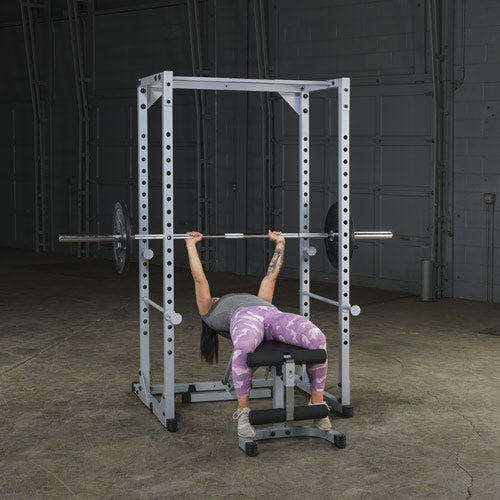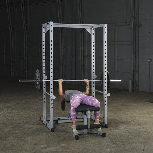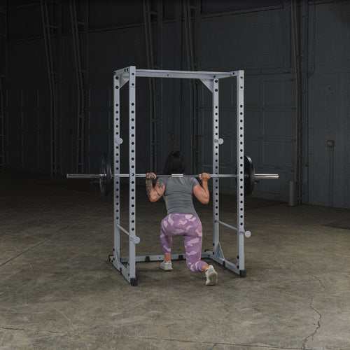 Fire up your workouts on one of the first inventions that allowed weightlifters to workout safely and effectively, the Power Rack! Created several years ago, nearly every gym has one...so why not you? With the wide "walk-in" design there is plenty of side-to-side movement for a variety of exercises such as squats, incline, decline, flat and military presses as well as shrugs and calf raises. Complete with 18 positions, two heat tempered lift-offs and two saber style safety rods so you can keep your exercise routine the way it should be simple and effective.