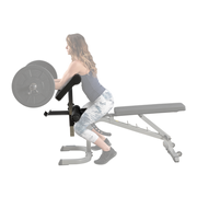 Designed to isolate and maximize Biceps, Triceps and Forearm muscle concentration. Extra-thick, DuraFirm™ pad. Bar saddle included. Cannot be used independently.