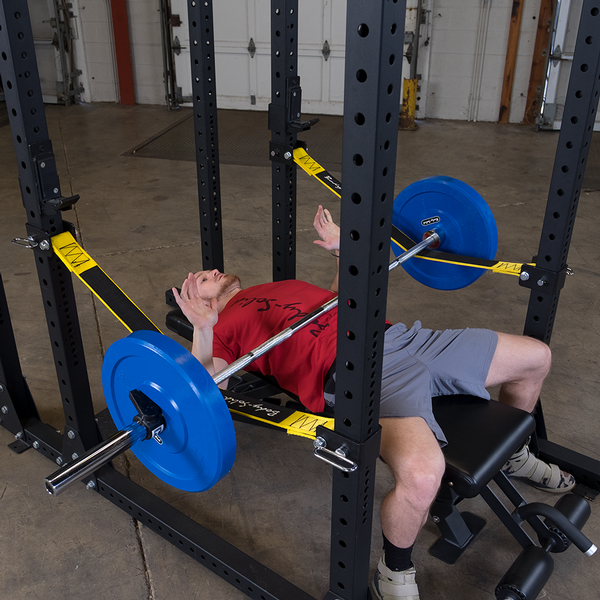 Compatible only with the Body-Solid SPR1000 Commercial Power Rack, the SPRSS Power Rack Strap Safeties are ideal for bench presses, squats, deadlifts, rack pulls, barbell rows and more. The SPRSS Strap Safeties are easy to adjust and will be your Olympic bar’s best friend by protecting its finish. The SPRSS Strap Safeties can be set at the same height for traditional power rack exercises and feature the ability to be offset for specific barbell movements.
