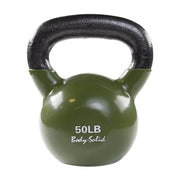 These kettlebells are made of solid cast iron and then dipped in vinyl for increased durability. Available in 5, 8, 10, 12, 15, 20, 25, 30, 35, 40, 45, and 50 lb. weights.