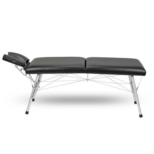 The ChiroLux Classic Chiropractic Table combines professional-grade stability and comfort with a lightweight foldable frame for easy portability. The table includes 1” thick firm density foam which allows for maximum patient comfort, while still providing a firm base for adjustments. Telescoping height adjustment and 5-position Quick-Touch Flexion/extension headpiece ensure that the table fits any patient, therapist, or chiropractor. ChiroLux CheekPads with High Density Foam included with the table provide even more comfort and adjustability to the headpiece.