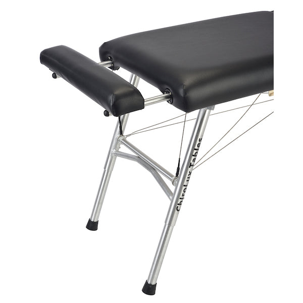 The ChiroLux Plus Chiropractic Table brings the professional-grade durability and portability of the ChiroLux Classic, but with the addition of function shoulder cutouts and improved weight capacity. The table’s high-quality synthetic upholstery, 1” thick firm density foam, and functional shoulder cutouts allow for maximum patient comfort, while still providing a firm base for adjustments. Telescoping height adjustment and 5-position Quick-Touch Flexion/extension headpiece ensure that the table fits any patient, therapist, or chiropractor. ChiroLux CheekPads with High Density Foam included with the table provide even more comfort and adjustability to the headpiece. This premium package includes armrest and leg extension attachments for an even more comfortable patient experience. Also included is the CrossBar, which allows you to easily convert the portable table into a stationary table with this stationary support rod.
