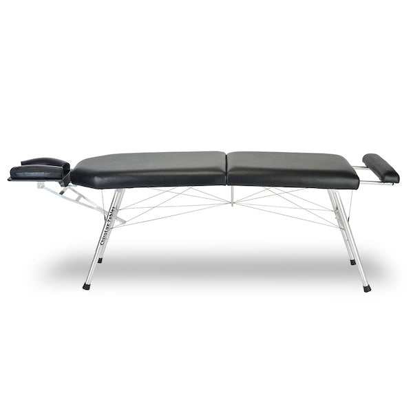 The cable system and aircraft aluminum tubing means that the table is both durable and lightweight. No need to worry about sliding or tipping with the wide stance legs and no-slip-feet. The table also includes the ChiroLux CarryCase made from heavy duty lightweight nylon canvas. The bag includes a large external pocket, internal storage pouch, as well as two signature backpack straps and side handle, which makes carrying this lightweight table extremely easy.