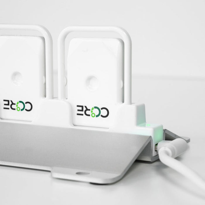 The CORE six-bay charging station is a convenient way to store and charge up to six CORE devices. Specifically designed for CORE, the charging station is simple and helps organise and charge multiple CORE devices.
