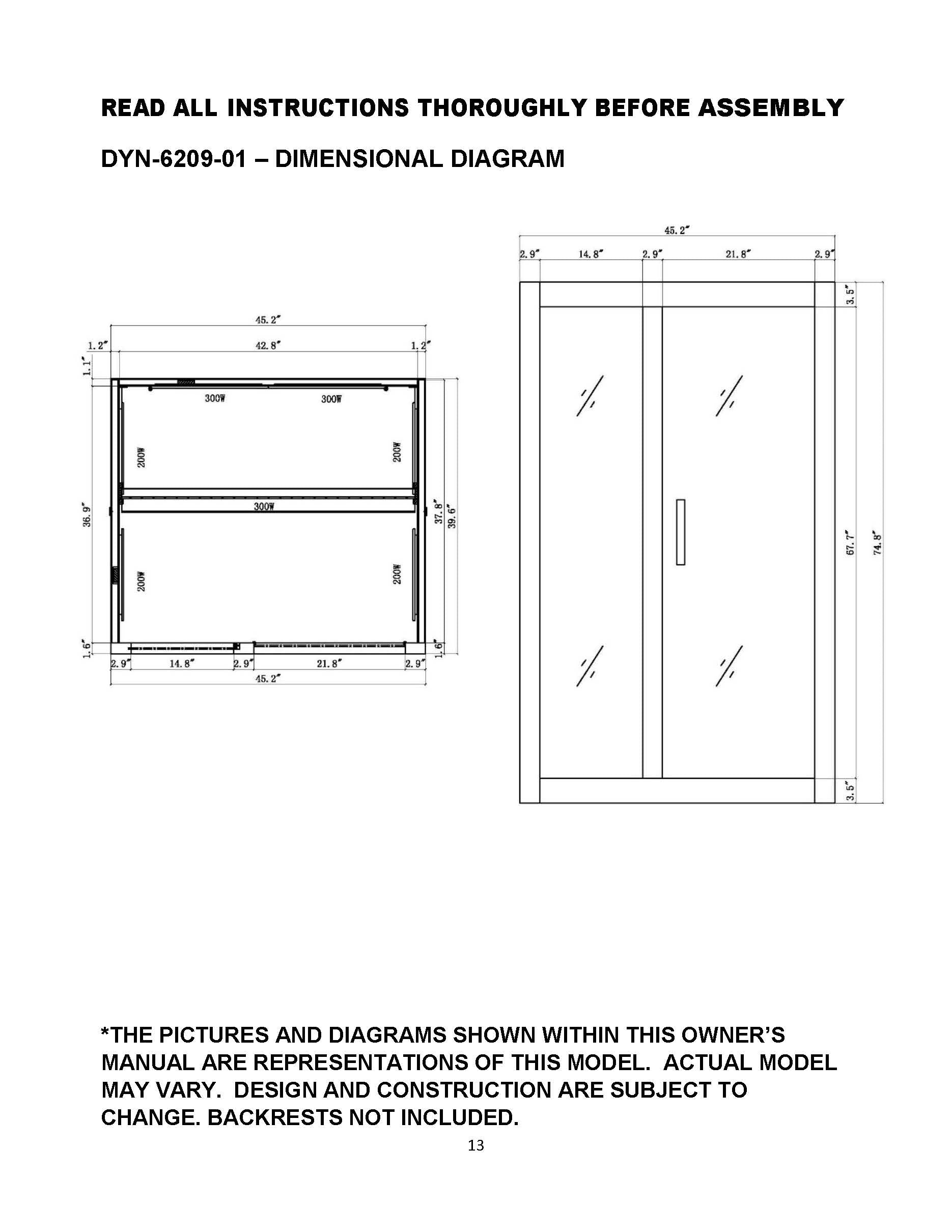 • Interior dimensions (WDH): 42″ x 36″ x 68″