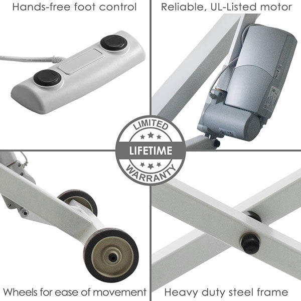 The Ellora Electric Lift Massage Table is the Earthlite's quietest and most popular spa hydraulic lift massage table. The Ellora™ electric lift table is designed for comfort, long-lasting reliability, easy-care, and great performance making this table a superb value. The Ellora features a heavy-duty steel frame, a Pro-Plush Deluxe 3 later 3" cushioning system, and wheels for ease of movement. The Ellora Electric Lift Salon Massage Table Package includes the Ellora massage table, Flex-Arms, Salon Headrest, and Neck Roll.