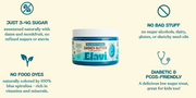 NO artificial dyes, NO sugar alcohols & NO added sugars.