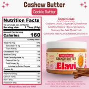 Cookie Butter Ingredients: Cashew butter, dates, coconut oil, sunflower lecithin, natural flavor, cinnamon, nutmeg, sea salt, monk fruit