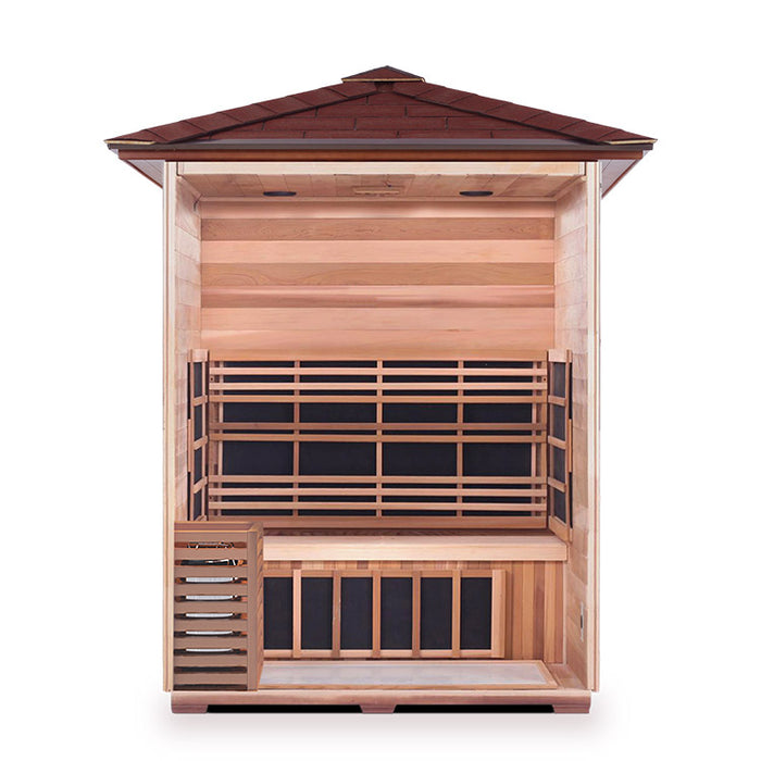 A modern door and sturdy construction mean that this indoor sauna will last a long time, especially indoors. We specialize in outdoor saunas and we bring the knowledge of how to make a tough sauna to our indoor models.