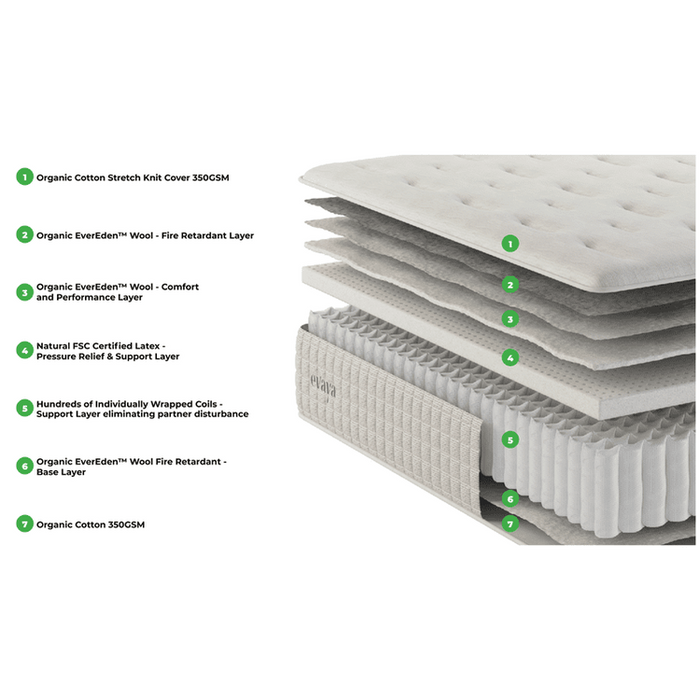 The Perfect Balance of Comfort and Support. Not too firm, not too plush—the Evaya® Original Mattress strikes the perfect balance for a restful, organic sleep. Designed for all sleep positions, this GOTS-certified (OT004910) mattress offers just the right blend of comfort and support.
