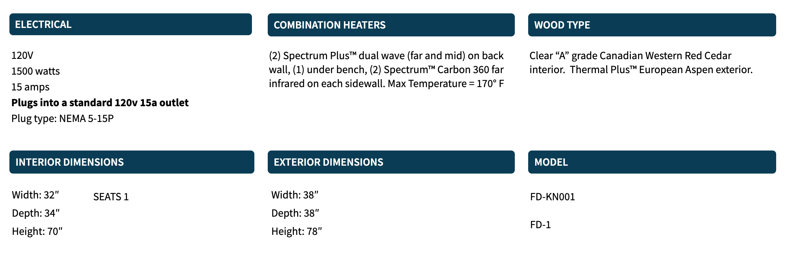 Transform any space in your home into a personal wellness escape with the compact Finnmark FD-1 Full Spectrum, 1-Person Infrared Sauna. The only infrasauna in the industry that combines UL Listed Spectrum Plus™ infrared heaters with Spectrum Carbon 360° which allows you to reach temperatures of 170° in less than 1 hour on a standard home outlet for a healthy sweat. While others try to compete, they can’t compare to the quality and craftmanship of Finnmark Design’s infrared saunas.