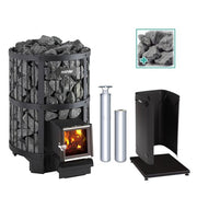 Harvia Legend 240 21kW Wood Burning Stove Package w/ Chimney Kit, Rock Cage, Protective Bedding, Sheath, Stones