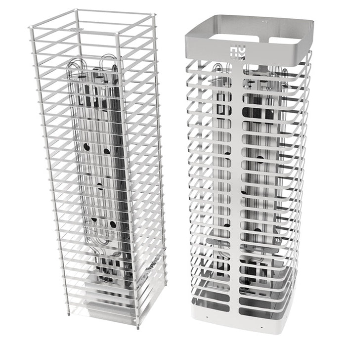 Elegant design meets superior performance. The compact, wall-mounted STEEL Mini 3.5 kW electric sauna heater has an exceptionally short safety distances, ideal for smaller sauna rooms. The STEEL Mini 3.5kW sauna heater is designed for sauna spaces up to 212 cubic feet (CF).