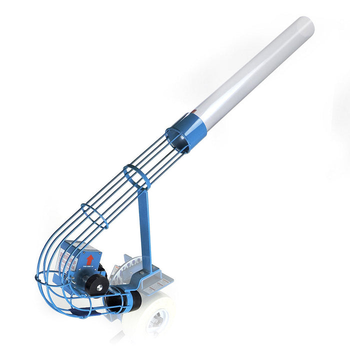 Durable, lightweight and portable. Attaches directly to pad bracket. Holds 24 lacrosse balls. One power source needed.