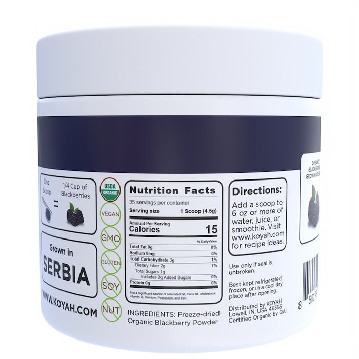 At KOYAH, the trust of our customers is what matters most to us and we are proud to produce products, like our Organic Freeze-Dried Blackberry Powder, that live up to the absolute highest quality standards and ensures YOU get the most out of what you eat!