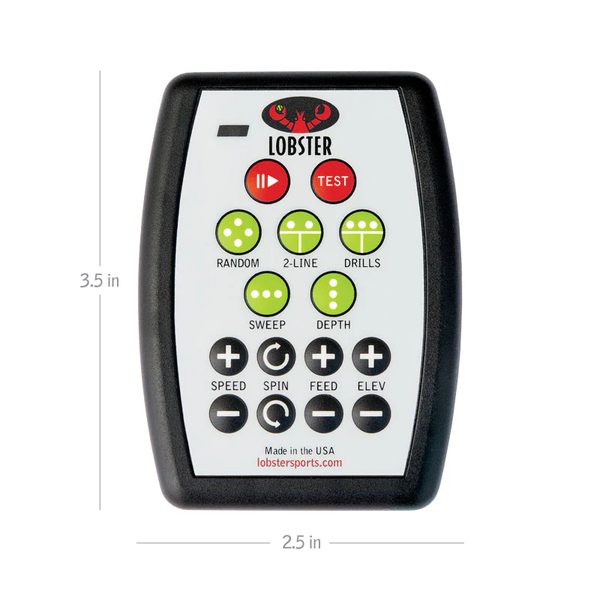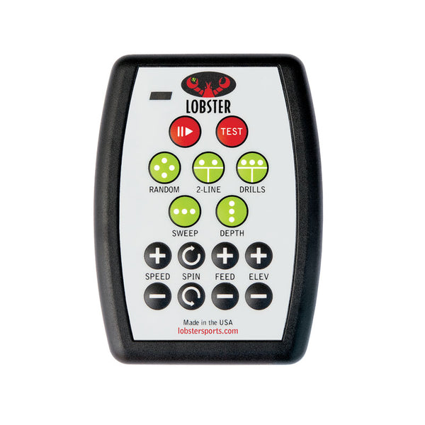 Gain greater control of your training regimen with the 20-function remote. The state-of-the-art compact controller allows you to make instantaneous changes to your Lobster tennis ball machine like: play/pause, oscillation sweep, fully random, 2-line, speed, feed, spin, and much more. This remote is NOT standard equipment on grand series machine, but rather, an optional accessory.