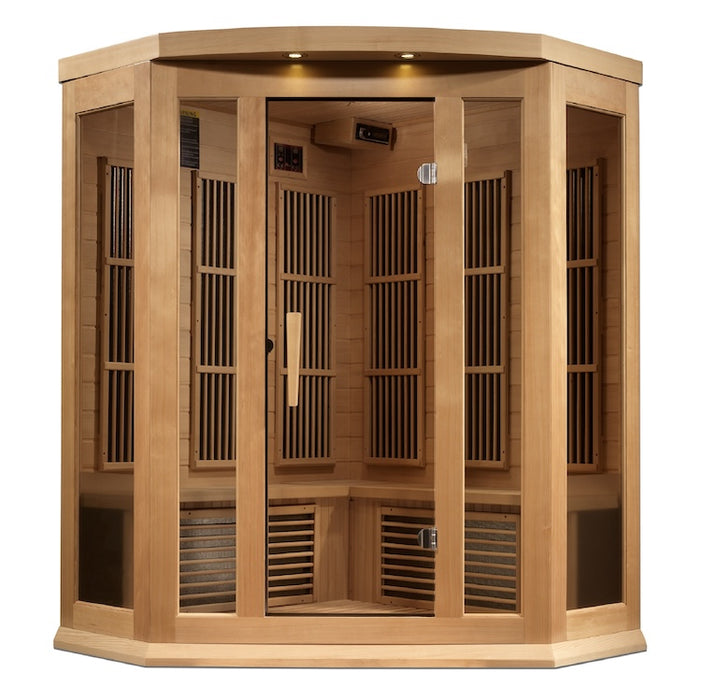 Maxxus 3 Person Corner Near Zero EMF FAR Infrared Sauna - Canadian Hemlock