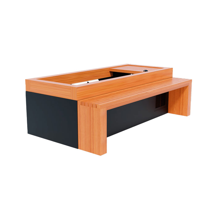 After extensive studying, testing, and analyzing numerous forums, Medical Sauna compiled a list of features for the perfect cold plunge. They prioritized practical additions, such as a timer to track how long you've been in the plunge without relying on a phone, which could fall into the water. They also sought numerous comforts that they needed every time they used the plunge, including water and weather-resistant spaces for robes, towels, phones, and watches. They aimed to add as many features as possible while staying true to our mission of optimizing its medical benefits.