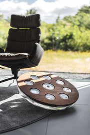 The Eau-Me Board comes in a generous 64 cm diameter with ample space for your foot positioning. Its unique feature is the water tank, designed to hold up to 6.5 litres water. For your footpad, choose between from our selection of real wood veneer or our HPL color palette to seamlessly suit your interior.