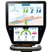 Integrated sensor technology captures and displays power and symmetry data in real time. Dual-touchscreen console with HD display. Intuitive user interface with engaging workout programs and easy-to-track metrics. The ergonomically designed padded seat with contoured back support provides a stable, supportive position for users while exercising