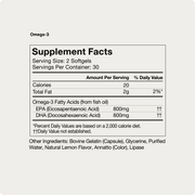 Momentous Omega-3 is a daily fish oil supplement designed to optimize intake of the most important Omega-3 fatty acids - EPA and DHA. Each serving delivers a potent 1500mg combined EPA and DHA in a 1:1 ratio. Our fish oil also contains a minimum of 90% triglyceride bound Omega-3’s - the form of Omega-3’s found naturally in fish and most easily absorbed by the body. The digestive enzyme Lipase is also added to further improve bioavailability. Momentous Omega-3 is molecularly distilled to ensure purity and remove metals, pesticides, and other possible contaminants. Each batch is NSF Certified for Sport to ensure label accuracy and athlete safety