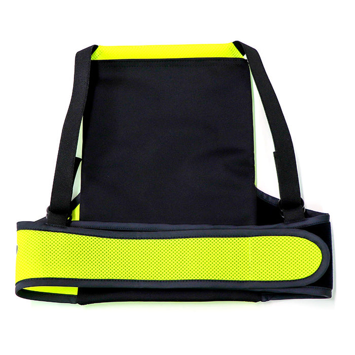 High-impact cooling is aimed at your back and held firm snug by a secure "weightless belt" system and adjustable shoulder straps.