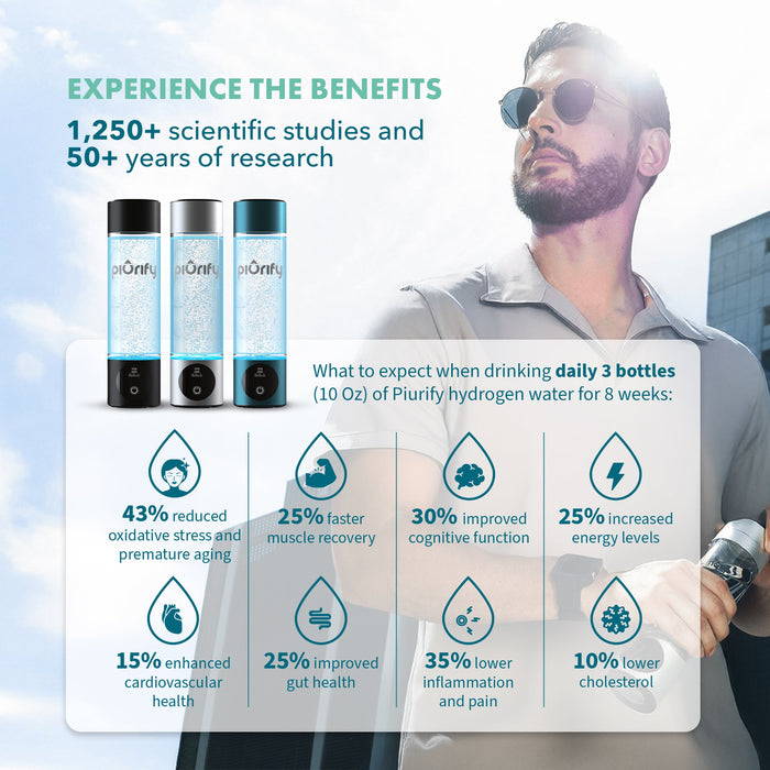 The PIURIFY Hydrogenator Bottle® is a versatile and adaptable solution that fits seamlessly into any lifestyle, whether you're a young athlete or a retiree looking to improve your health and well-being.