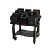 The handles are stored conveniently on the stand to allow for quick weight changes by easily changing handles.