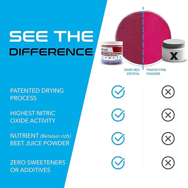PUECLEAN BEET is 3x nitric-oxide support certified versus regular beet powder! A premium quality product with the dark, red and crystalline ArtiO2 beet juice crystals in each scoop.