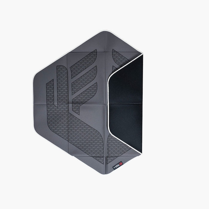 The StretchMat features a 3-layered design. The top surface is a soft, woven polyester making it easy to move, spin and stretch. The middle contains a 5mm layer of high density foam for comfort. The bottom is slightly grippy, water-proof material for use on any surface, indoors or out. Snow, mud, wet grass? No prob.