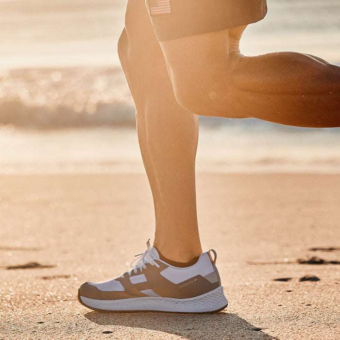 A 10mm heel-to-toe drop allows for the ideal balance between a running stride and a rucking gait. You have enough of a lift to reduce the strain on your achilles and support your heel strike while still controlling your cadence.