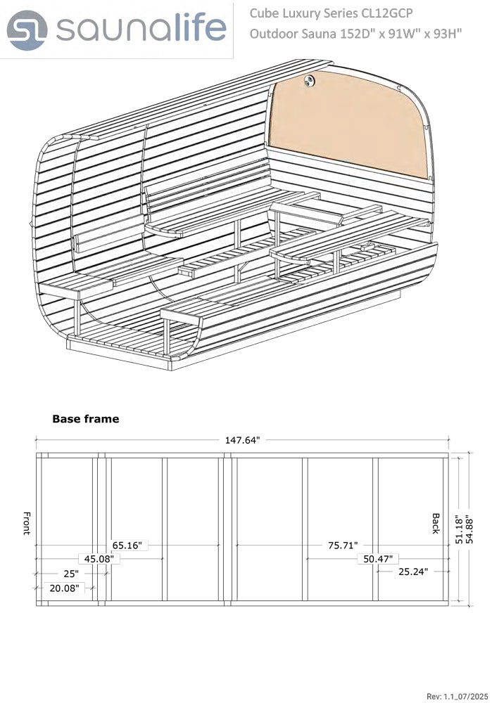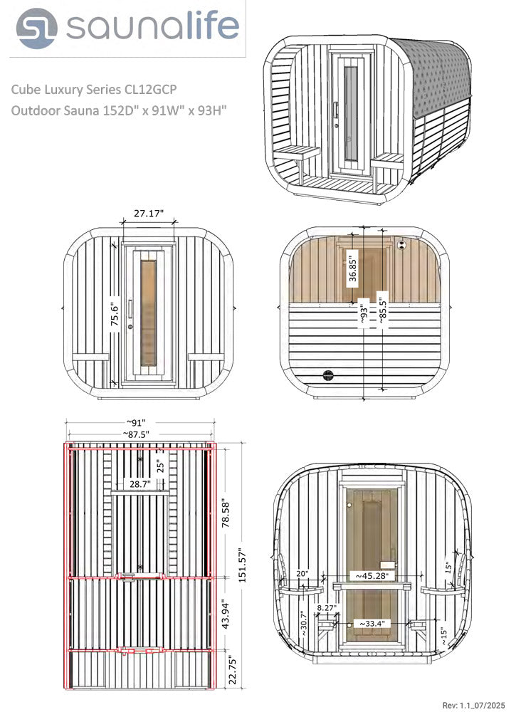 Discover unparalleled comfort, luxury, and wellness in the 8-person SaunaLife Cube-Series Model CL12GCP sauna kit. Designed as a true sauna suite, it offers a dedicated dressing room, a welcoming front porch, and a spacious sauna with a large picture window, providing uncompromised comfort.