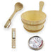 Enjoy a traditional Finnish sauna experience with the essential SaunaLife Accessory Package 5 sauna bucket and ladle set! The sauna bucket is made in Finland of lightweight and durable aluminum with a powder-coat black finish. The matching aluminum sauna ladle features a lightweight and sturdy bamboo handle that remains cool to the touch even in extreme heat. The ladle doubles as a handle for the sauna bucket when slotted through the openings on the sides or can rest atop the bucket in the rests. This set also includes an easy-to-read sauna thermometer and hygrometer. A must-have for true sauna enthusiasts, this set adds a modern, Scandinavian flare to any sauna interior.