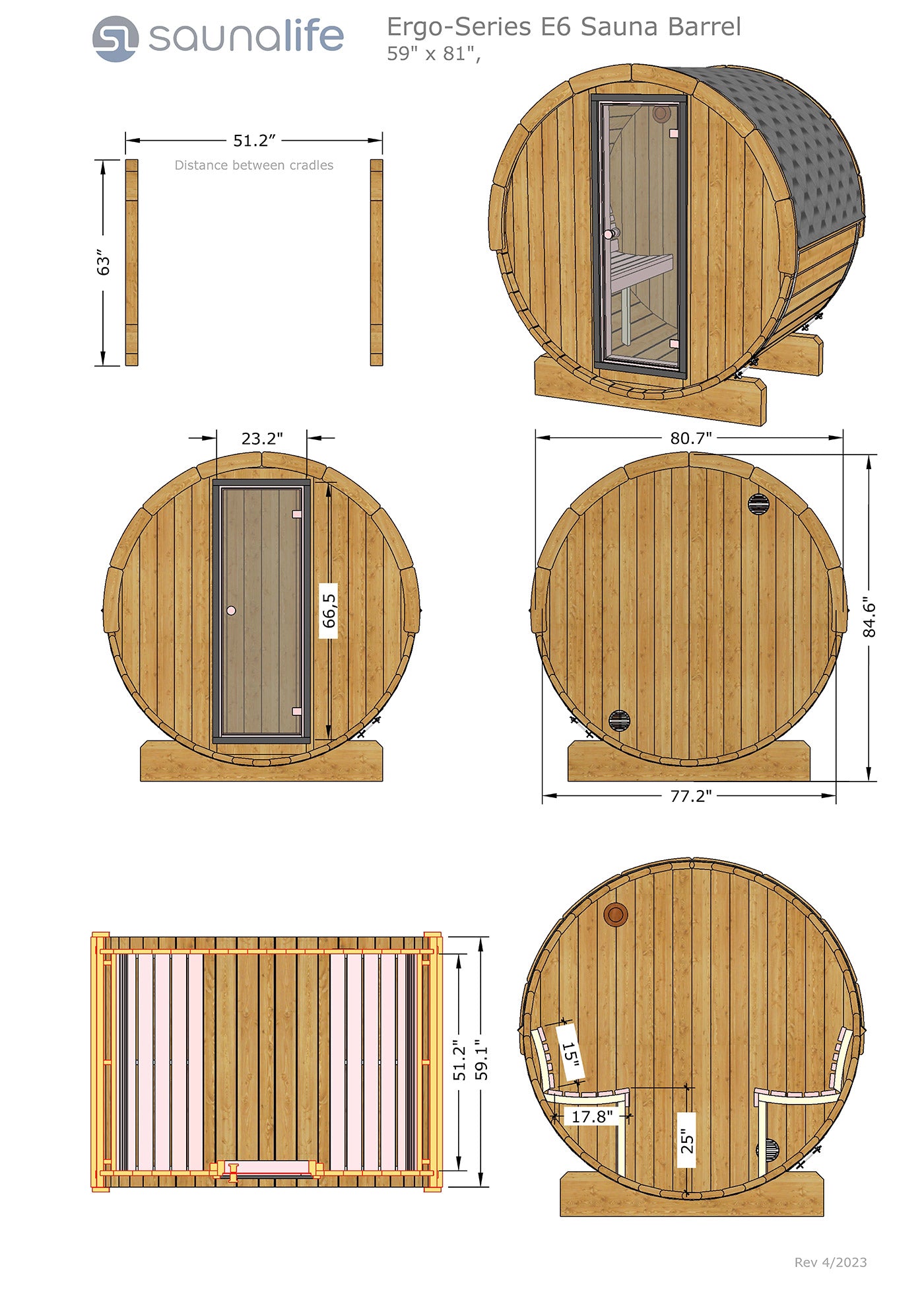 The 2-4person SaunaLife ERGO-Series E6 Outdoor sauna barrel was designed and engineered by sauna enthusiasts to be the most comfortable, durable, and attractive barrel saunas you can buy.