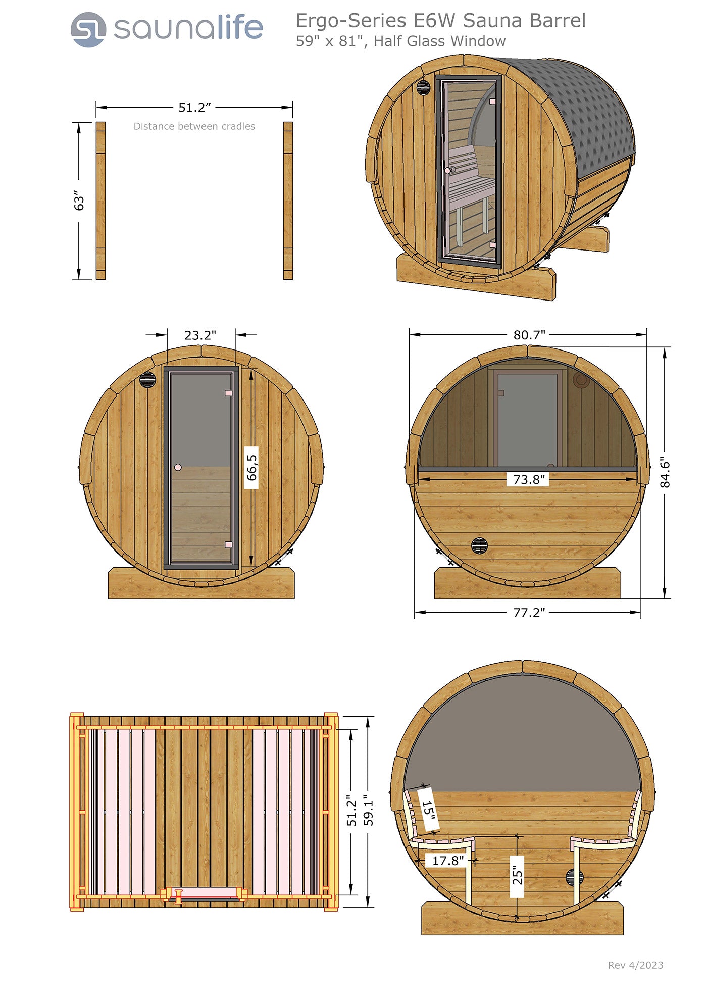 Model E6W Sauna Barrel
