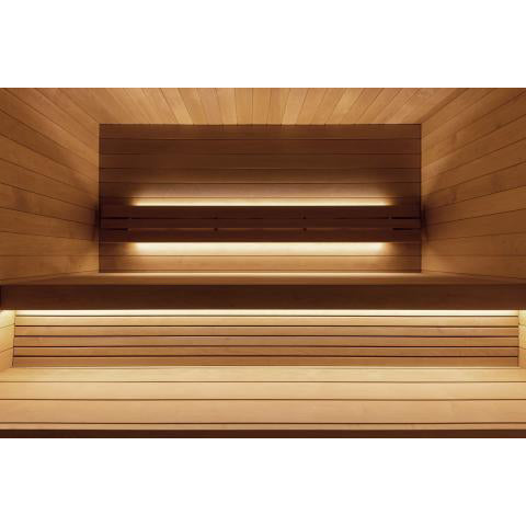 The calming beauty of the natural wood adds a layer of serenity to your sauna experience, and the soft illumination from indirect LED lighting will elevate this effect. The Model G7 includes a low-voltage, waterproof white LED lighting system that uses app-based Wi-Fi, allowing you to set the perfect ambiance. A hand-held remote control is also provided for on/off/dim operation. This heat and water certified (IP67), SaunaLife features dotless LEDs for a modern, upscale appearance.
