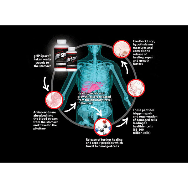 Created by an internationally renowned Cambridge and Harvard educated British MD, gHP Sport is an all natural combination of pure free-form crystalline amino acids that assist your body to produce agents that start the natural process of cell repair and regeneration. Improved sleep, increased energy, and a dramatic improvement in athletic recovery time are just a few of the many benefits you can quickly experience from taking gHP Sport.
