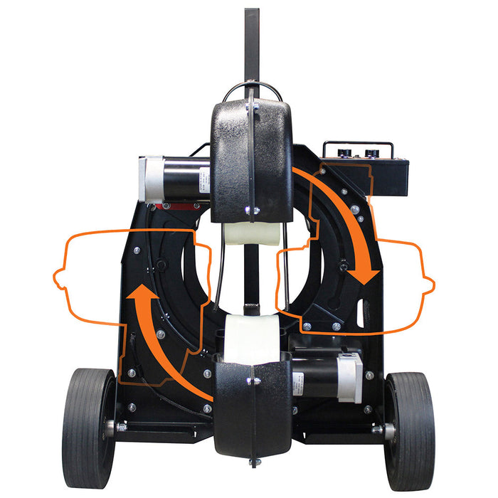The Strike Attack soccer machine will rotate throwing positions and angles to provide powerful kicks, spin shots, and thousands of backspin passes per practice with the ability to lock in exact placement, speed and spin for precise repetition. This versatile unit can deliver cross kicks, indirect free kicks and penalty kicks with any speed and bend seen in international play.
