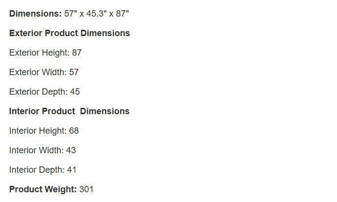 - Interior Height: 68"