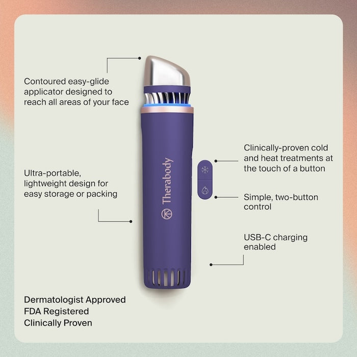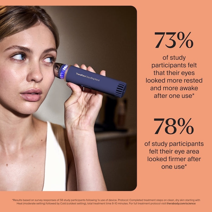 Peace out, puffiness. Say hello to your new skincare hero, the first-of-its-kind TheraFace Depuffing Wand that features cold and heat facial treatments in one portable device for use at home and on-the-go. Clinical studies showed decreased puffiness and dark circles under the eyes, and enhanced radiance.
