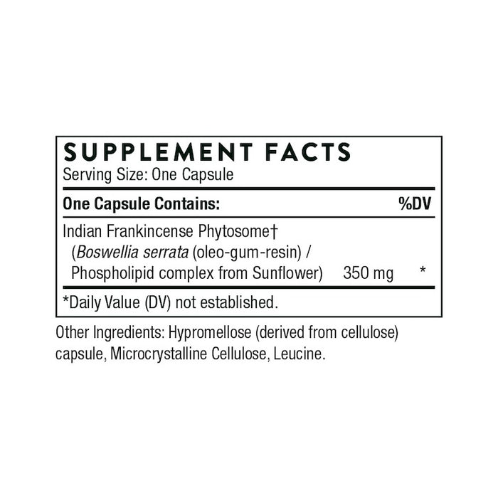 Boswellia phytosome is boswellia extract that has been chemically bound to phospholipids to increase its absorption. Casperome® – its trade name – has been clinically studied to determine its ability to provide a healthy balance of inflammatory cytokines, which are the chemical messengers that control the responses of the immune system. These studies have shown that Boswellia phytosome supports a healthy inflammatory response in the respiratory tract and the GI tract, as well as in the joints, muscles, and tendons.* Boswellia phytosome also helps balance the cerebral inflammatory response to protect brain tissue.*