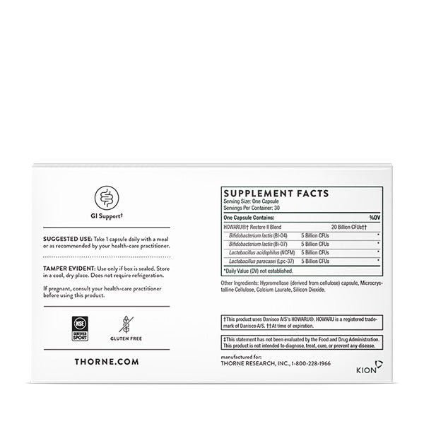 FloraSport 20B is NSF Certified for Sport®. It is a unique probiotic blend that contains 20 billion active cultures per capsule. It provides support for individuals who have high demands on their digestive tract or their immune system due to travel, athletic training and competition, and/or chronic stress.* In addition, clinical research supports the use of the specific probiotic formula in FloraSport 20B (HOWARU Restore®) for gastrointestinal health in individuals on an antibiotic regimen.* FloraSport 20B is a superior blend of freeze-dried Lactobacillus paracasei, Lactobacillus acidophilus, and two strains of Bifidobacterium lactis. It comes in individually-sealed blister packs for humidity and temperature control.