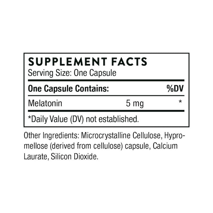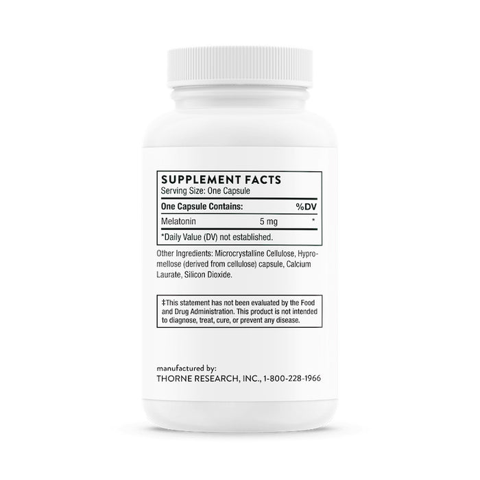 Thorne offers melatonin in both 3 mg (Melatonin-3) and 5 mg (Melatonin-5) capsules. Melatonin, the primary hormone of the pineal gland, is a powerful "chronobiotic" that helps maintain the body's normal circadian rhythms.* In individuals who have difficulty sleeping or who have altered circadian rhythms because of jet lag or night shift work, melatonin supplementation promotes the resynchronization of this cycle.*